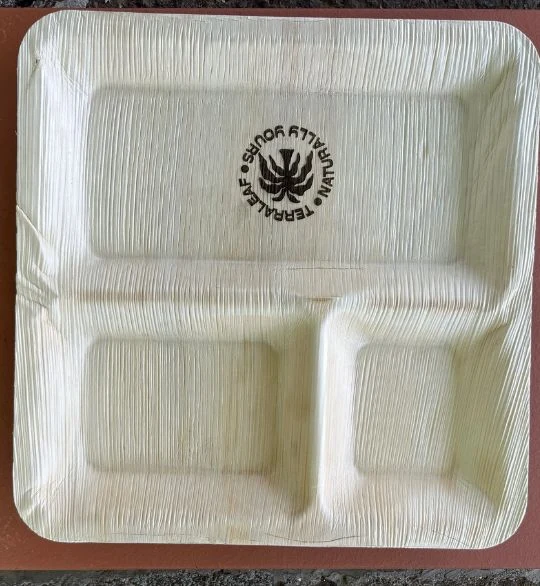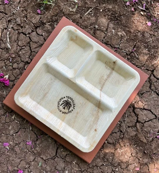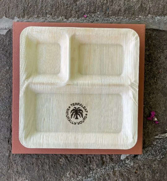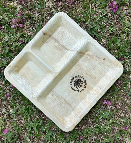 Terra Leaf – 10 inch, Areca Palm Leaf Square Plates with 3 Compartments (Pack of 25 Pcs)