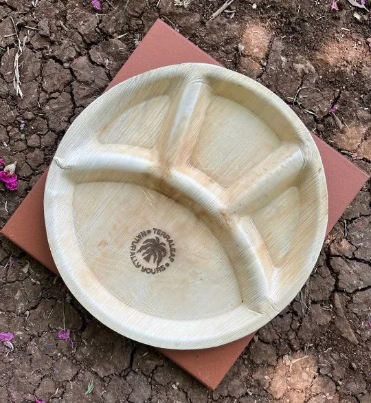 Terra Leaf – 12 inch, Areca Palm Leaf Round Plates with 4 Compartments (Pack of 25 Pcs)